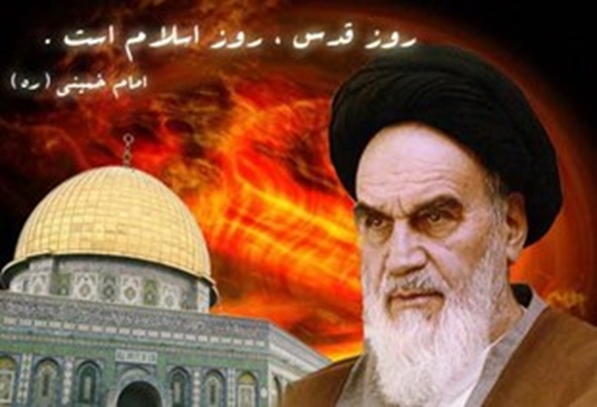 «روز قدس یک روز جهانی است، روزی نیست که فقط اختصاص به قدس داشته باشد روز مقابله مستضعفین با مستکبرین است. روز مقابله ملتهایی است که در زیر فشار ظلم آمریکا و غیرآمریکا بودند … روزی است که باید مستضعفین مجهز بشوند در مقابل مستکبرین و دماغ مستکبرین را به خاک بمالند … روز قدس روز اسلام است، روز قدس، روزی است که اسلام را باید احیاء کرد و احیاء بکنیم و قوانین اسلام در ممالک اسلامی اجرا بشود.