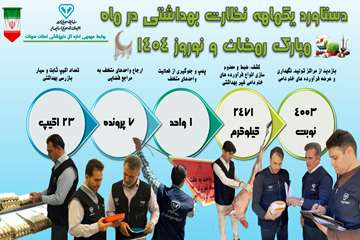 اینفوگرافیک تشدید نظارت بهداشتی نوروز 1404 1404/01/17 - 06:59 - تعداد بازدید: 2 - کد خبر : 342948 - گروه خبری : عکس - تعداد نظرات : 0