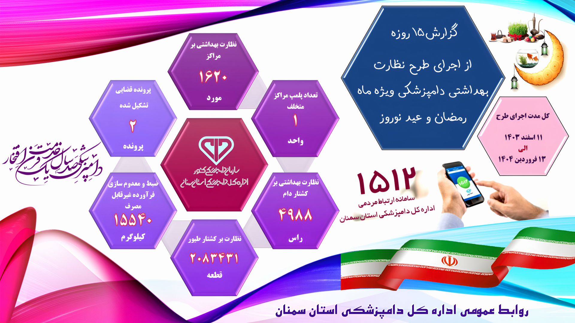 اینفوگرافیک 15 روزه تشدید نظارت بهداشتی نوروز 1404 1404/01/05 - 07:10 - تعداد بازدید: 4 - کد خبر : 342950 - گروه خبری : عکس - تعداد نظرات : 0